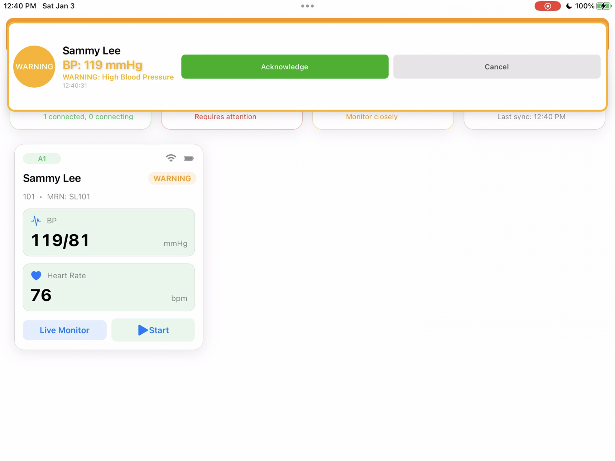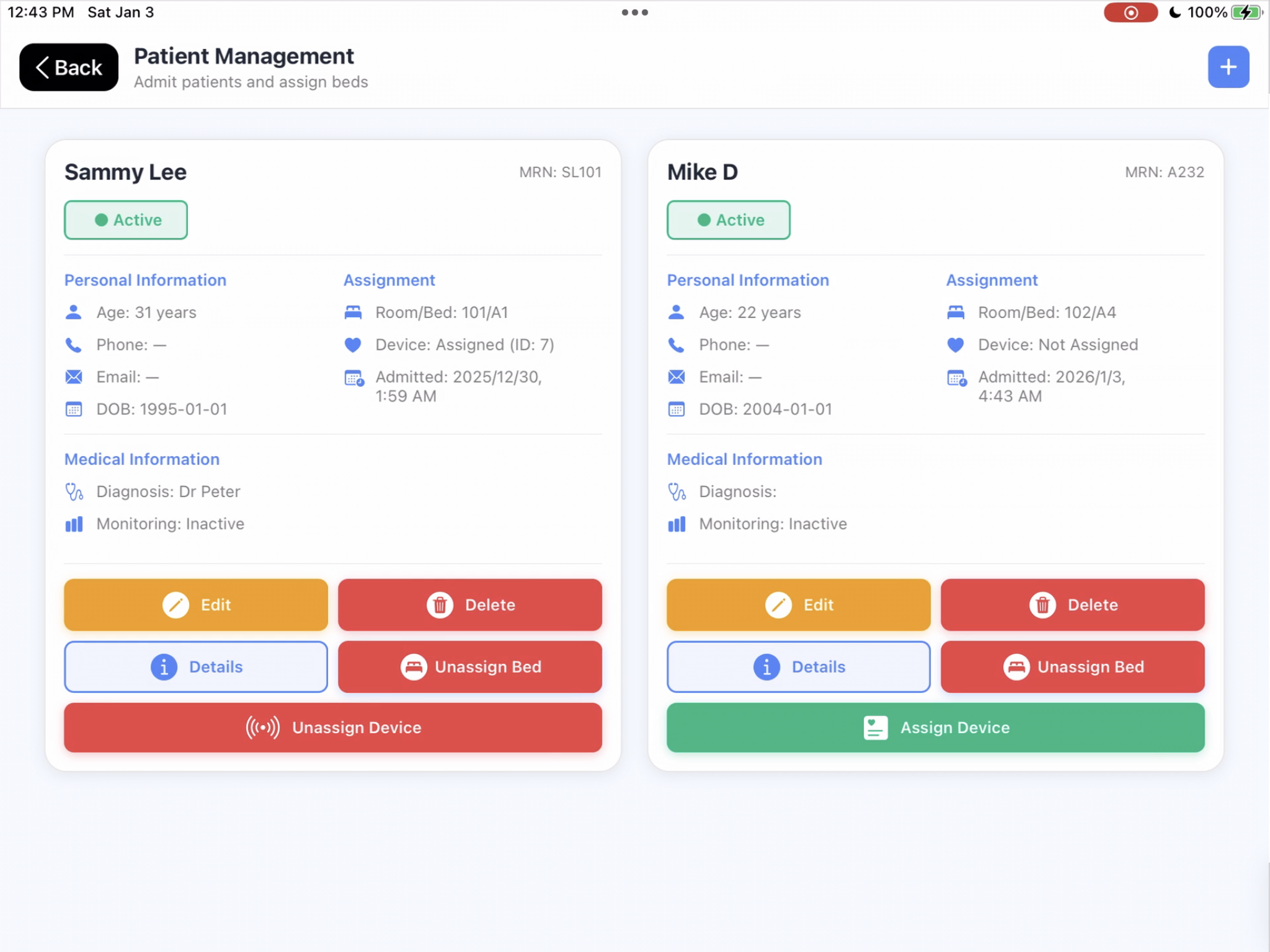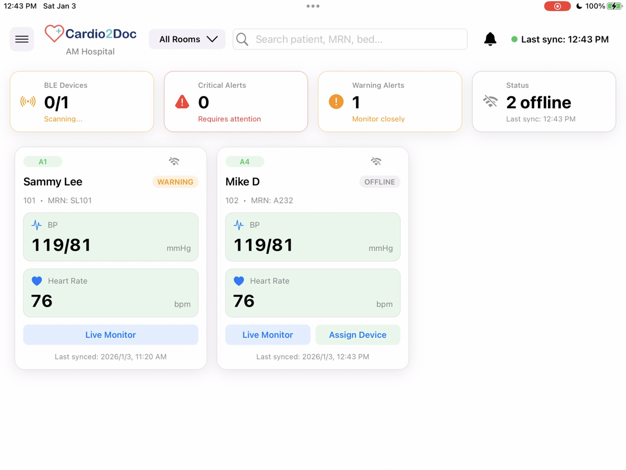 - Centralized multi-patient dashboard