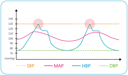 Then, import the reading into our specialized algorithm based on the Moens- Korteweg-Equation, and result an accurate blood pressure reading without the need of calibration.